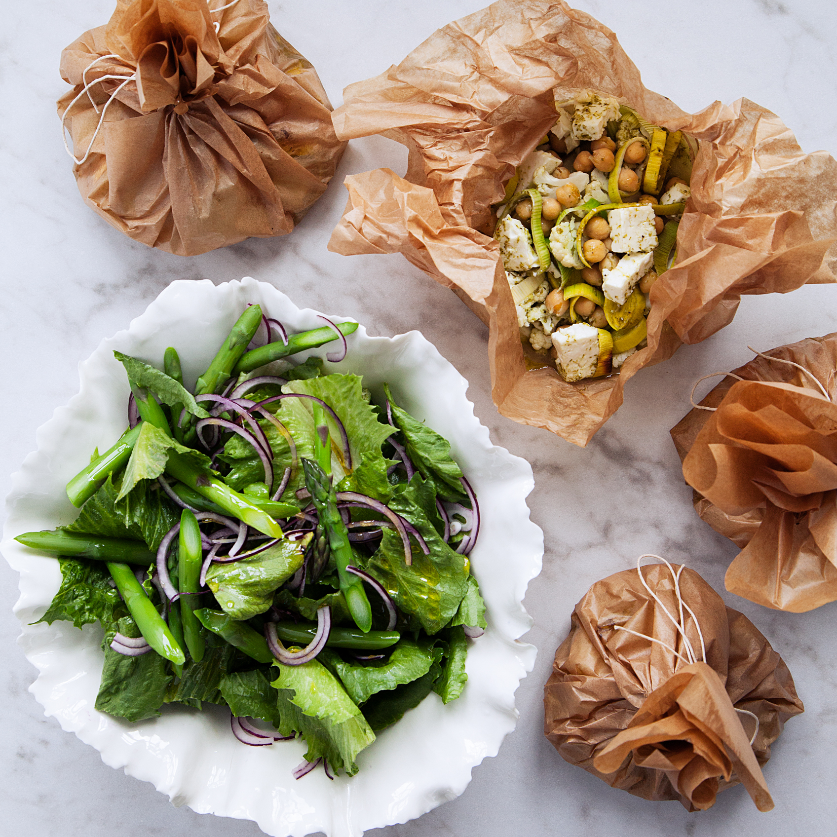 Blomkål- och fetaostpaket med primörsallad