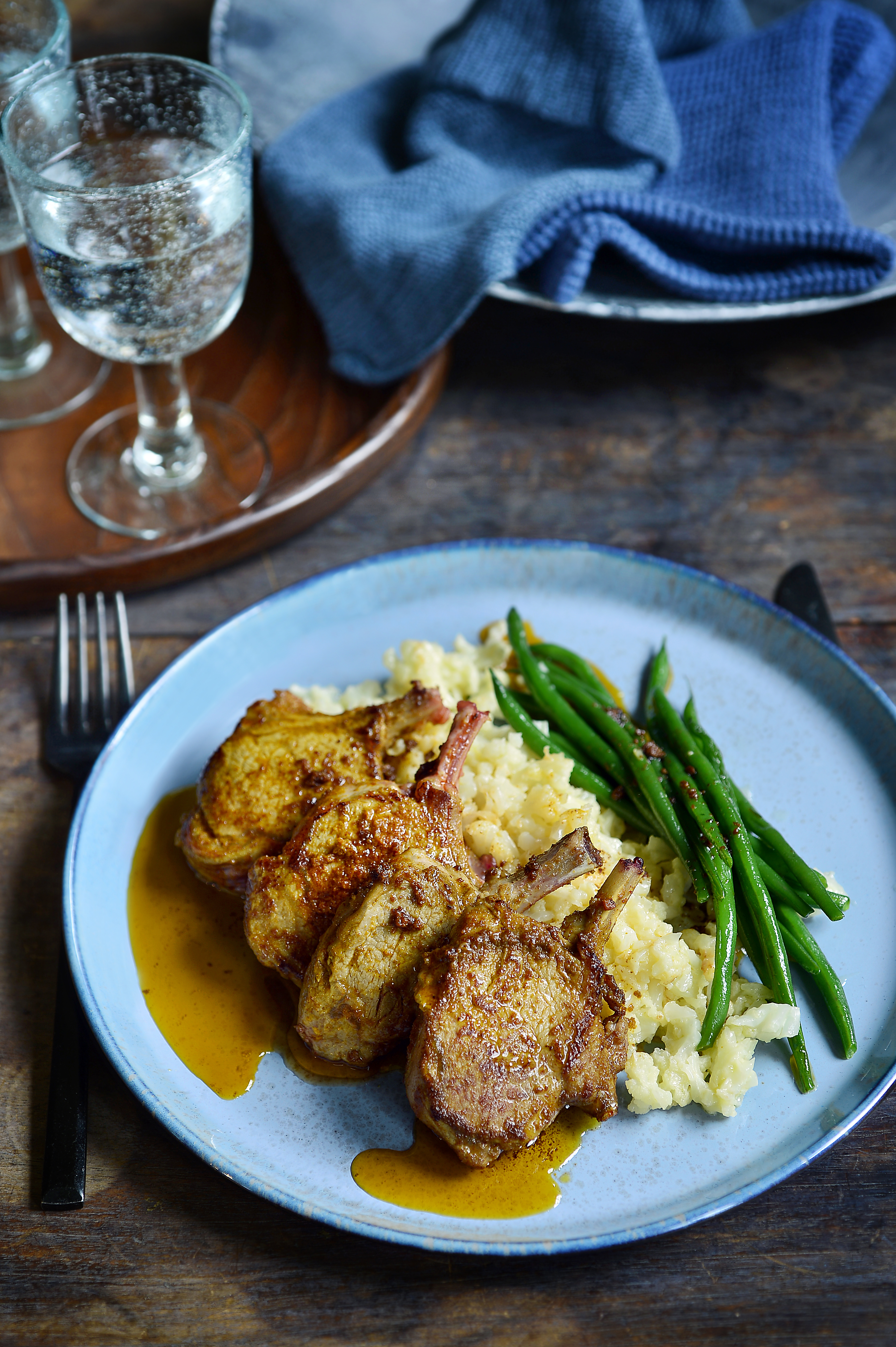 Lammkotletter med krämig blomkål och stekta haricots verts