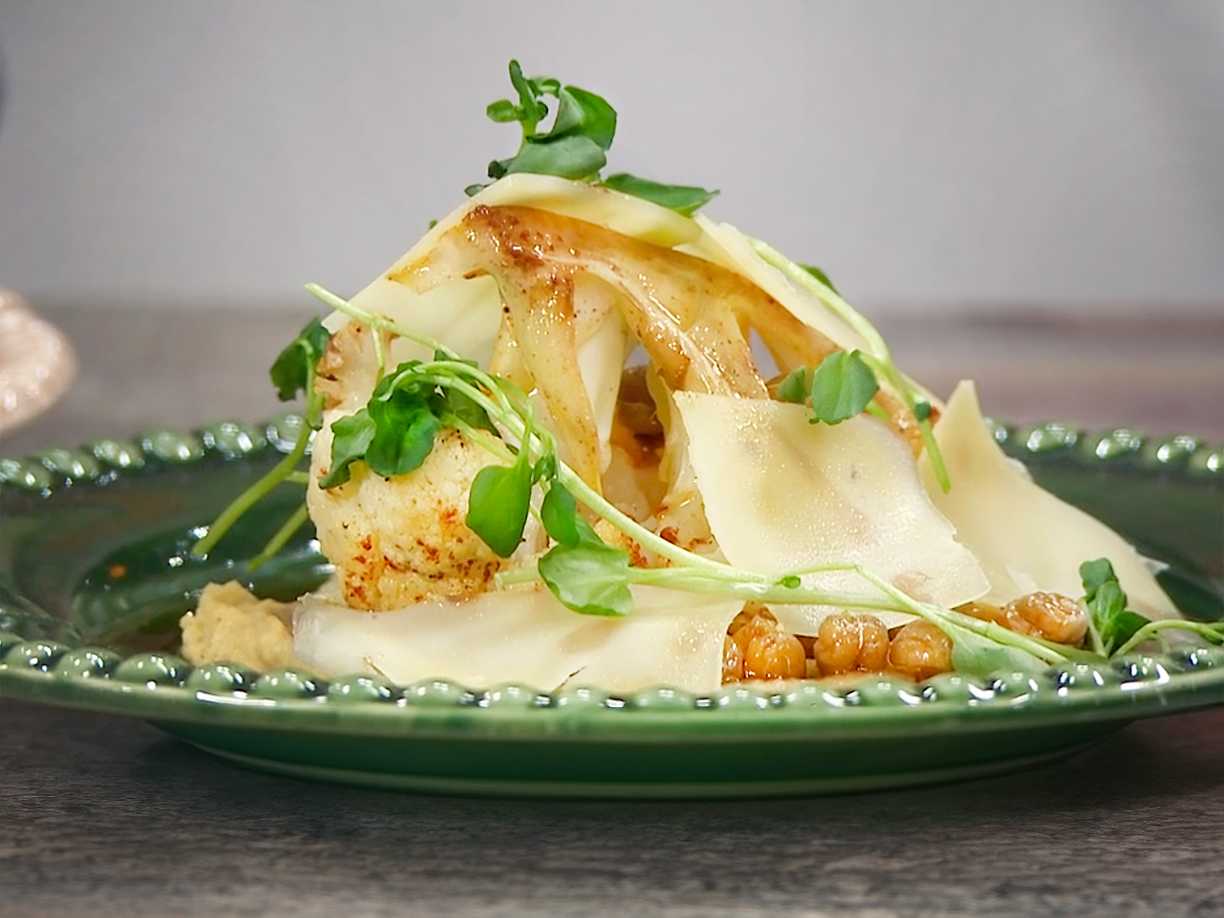 Rostad blomkål med spiskumminsmör, citron och krasse