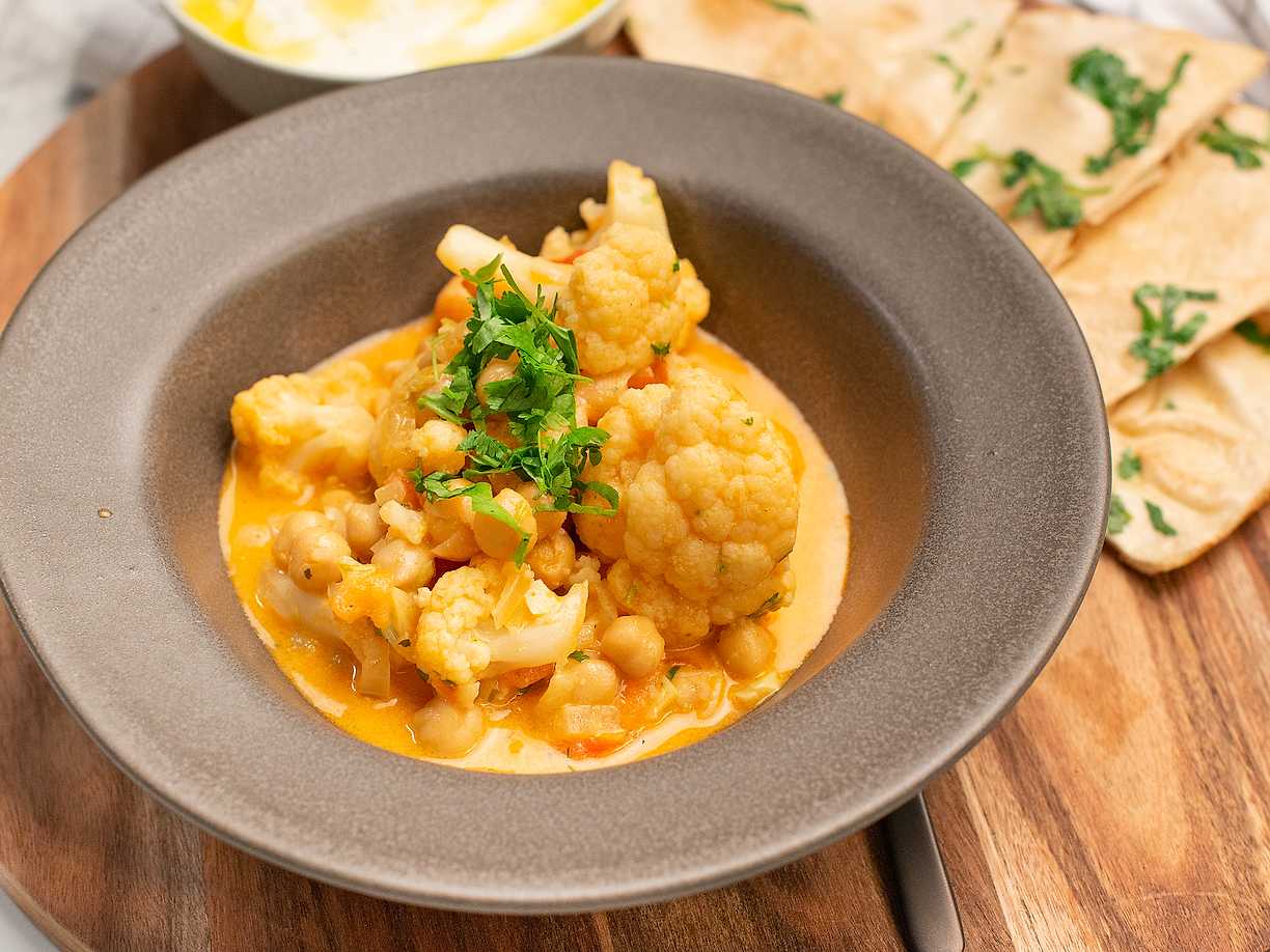 Krämig currygryta med blomkål och kikärtor