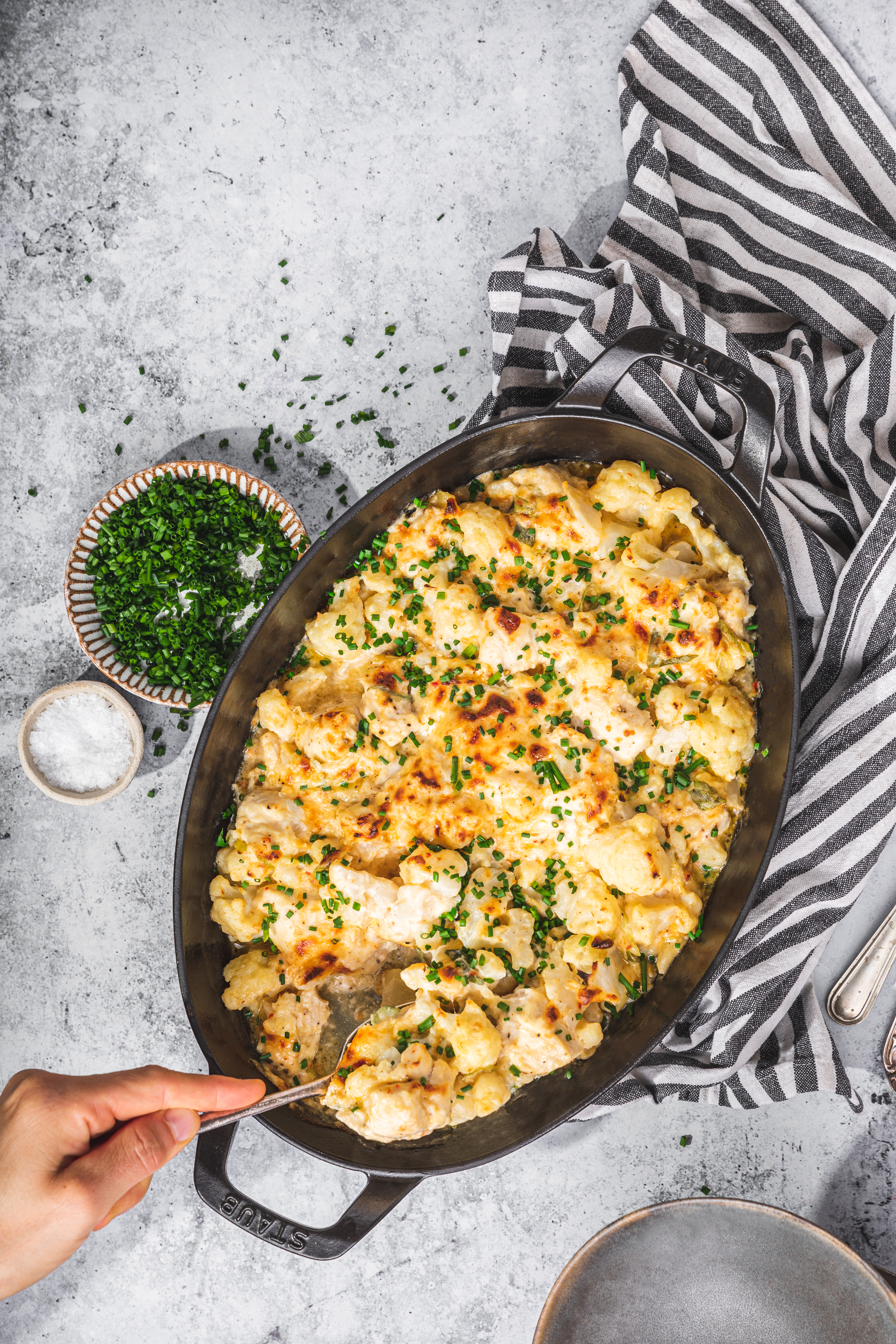 Buffalokyckling- och blomkålsgratäng