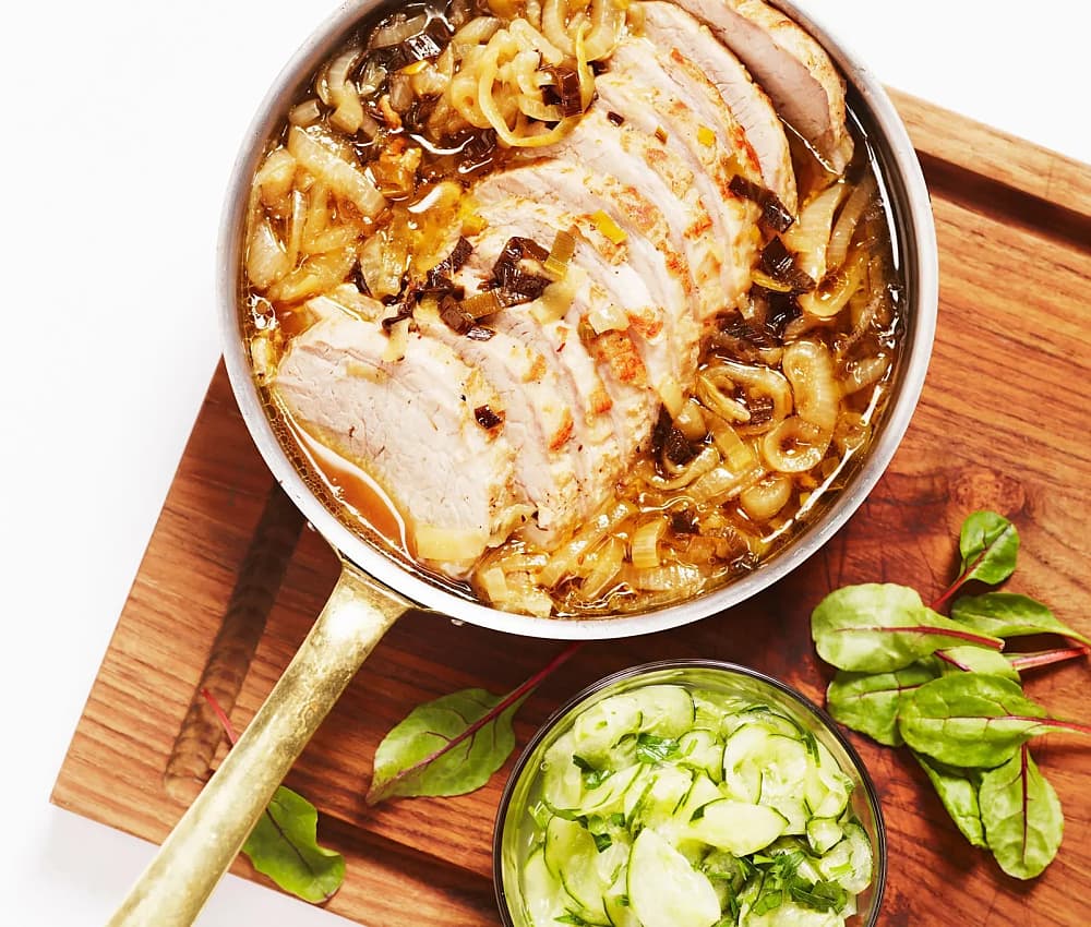 Lök- och ölbräserad kotlett med blomkålsmos