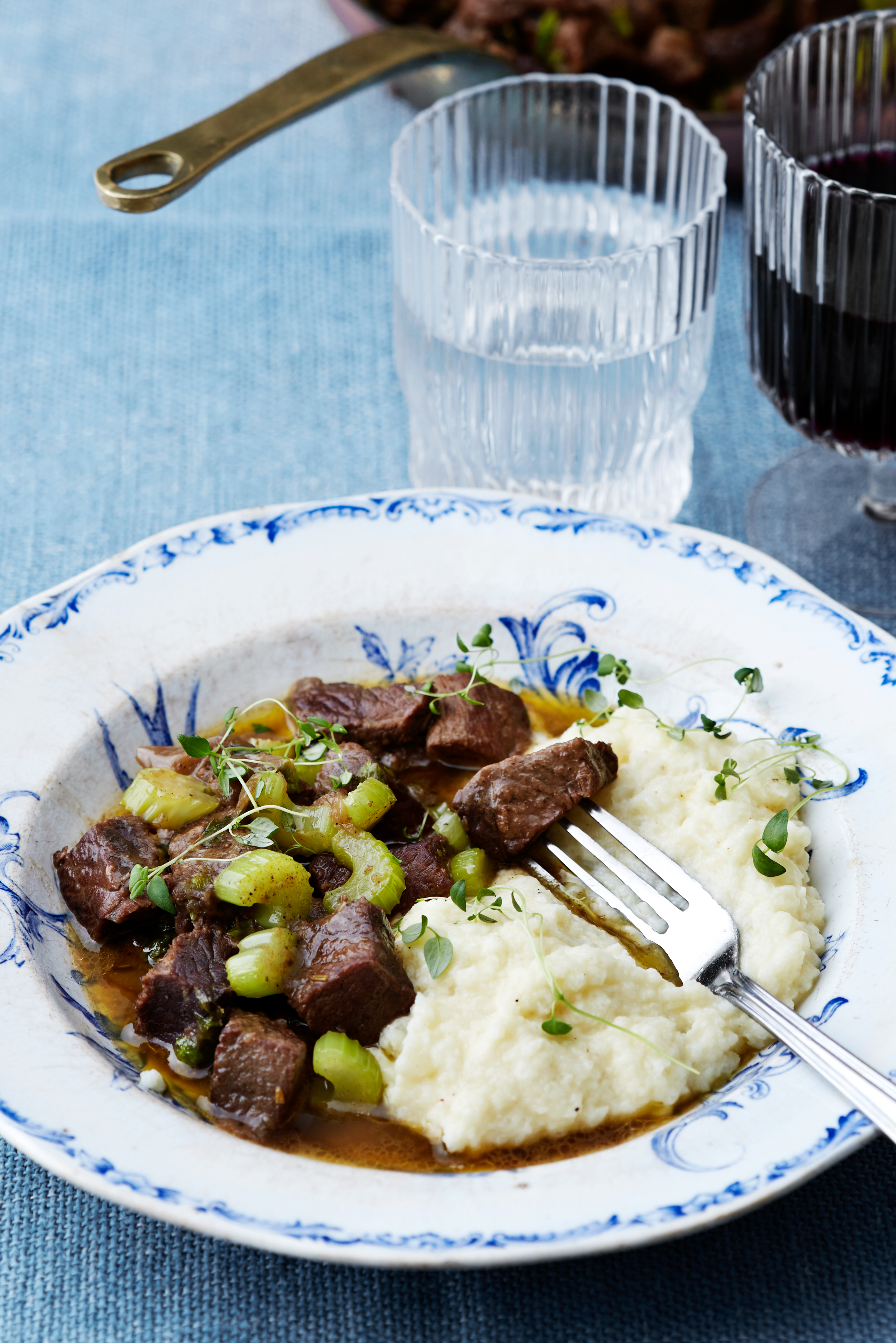Klassisk högrevsgryta med blomkålsmos