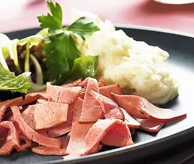 Källarrökt skinka med blomkålspuré