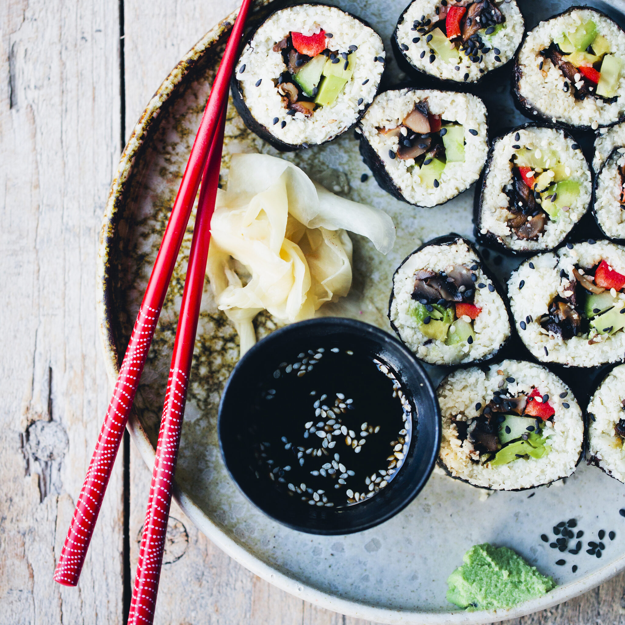 Sushirullar med svamp och blomkålsris