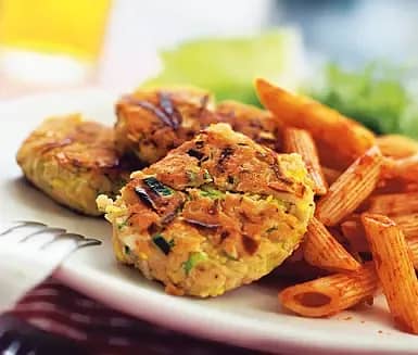 Pasta med majs- och bönbiffar och tomatsås