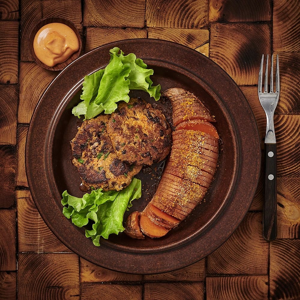 Bönbiffar med rostad sötpotatis
