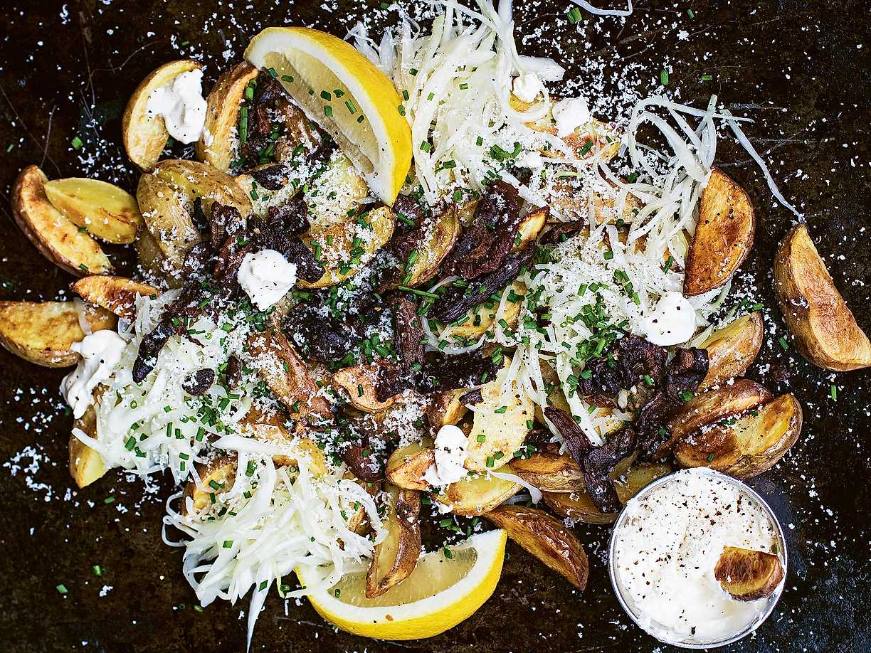Renées söta linsbiffar med rotfrukter och vit böndipp