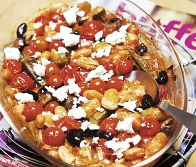 Grekisk vegogratäng med tomat och bönor