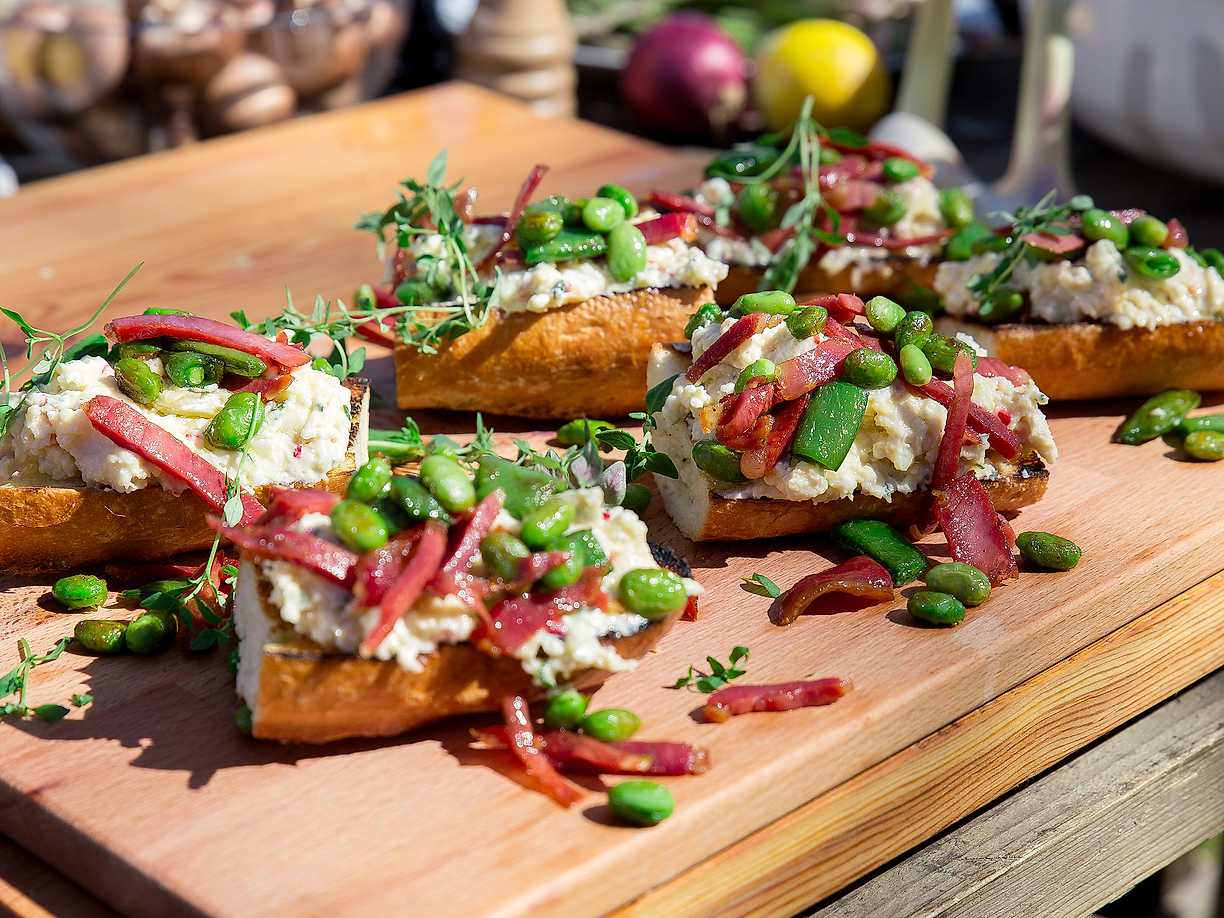 Getostbruschetta med blandade bönor och svensk prosciutto