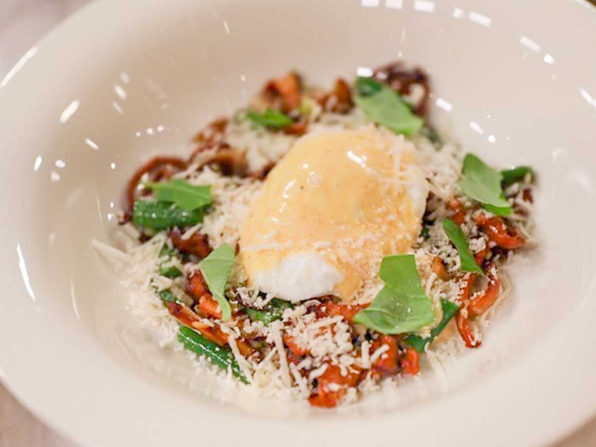 Pocherat ägg med svamp och bönor