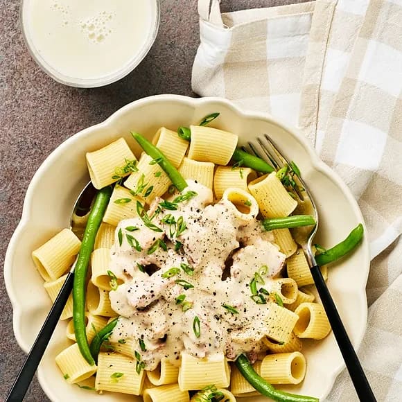 Pasta och baconsås med bönor