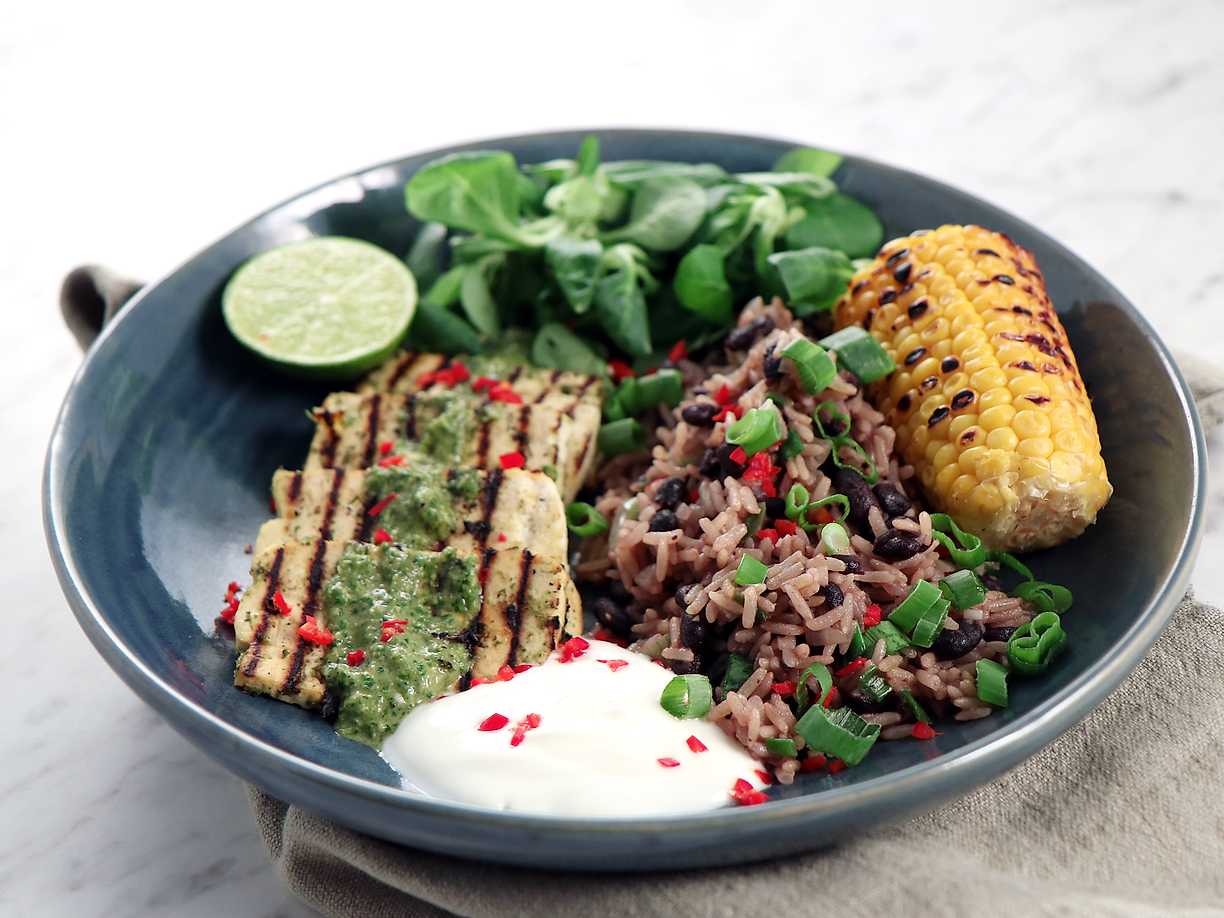 Karibisk rice 'n' beans med jerkmarinerad tofu