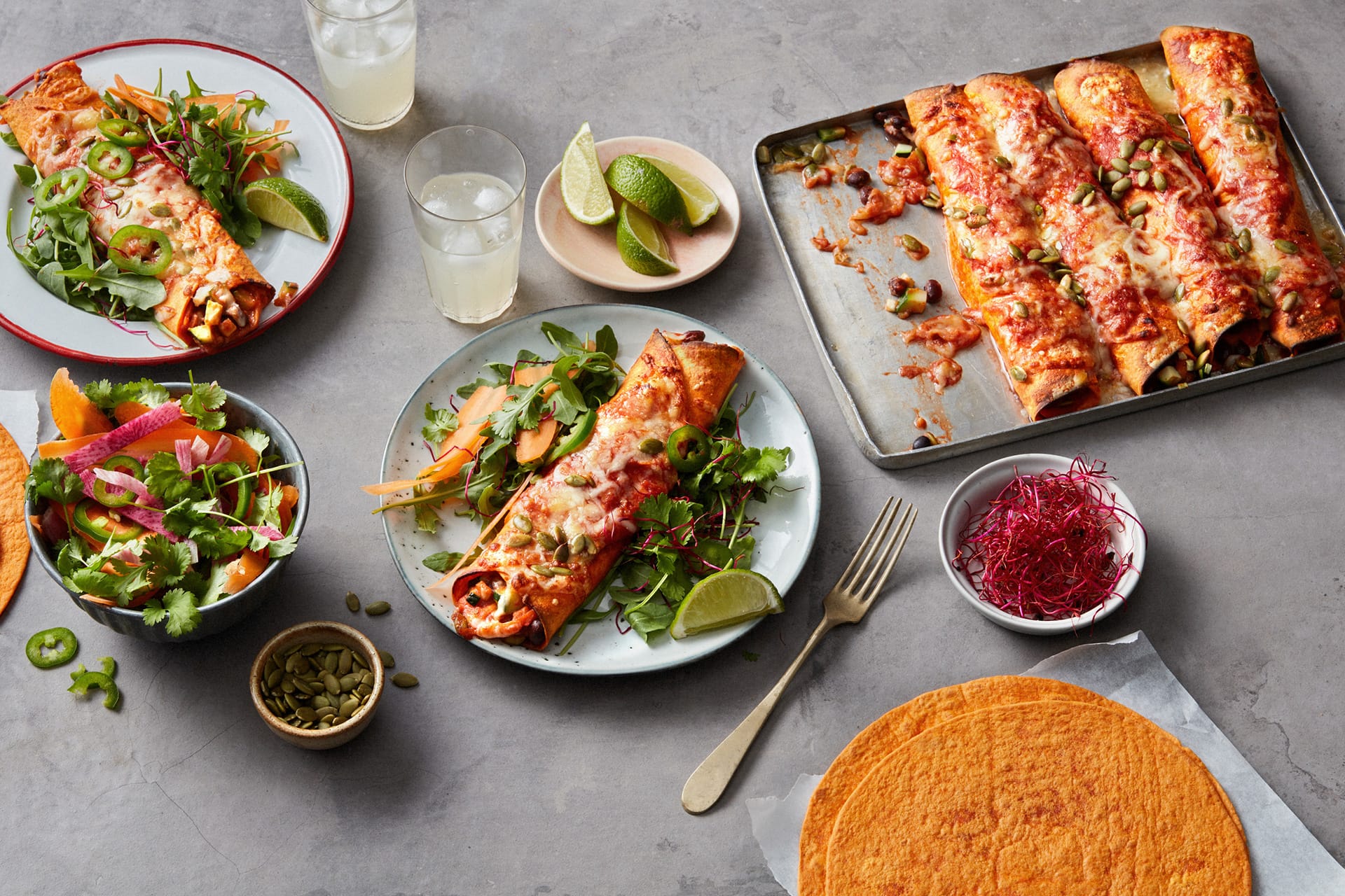 Chili bean & cheese enchilada i morotstortilla