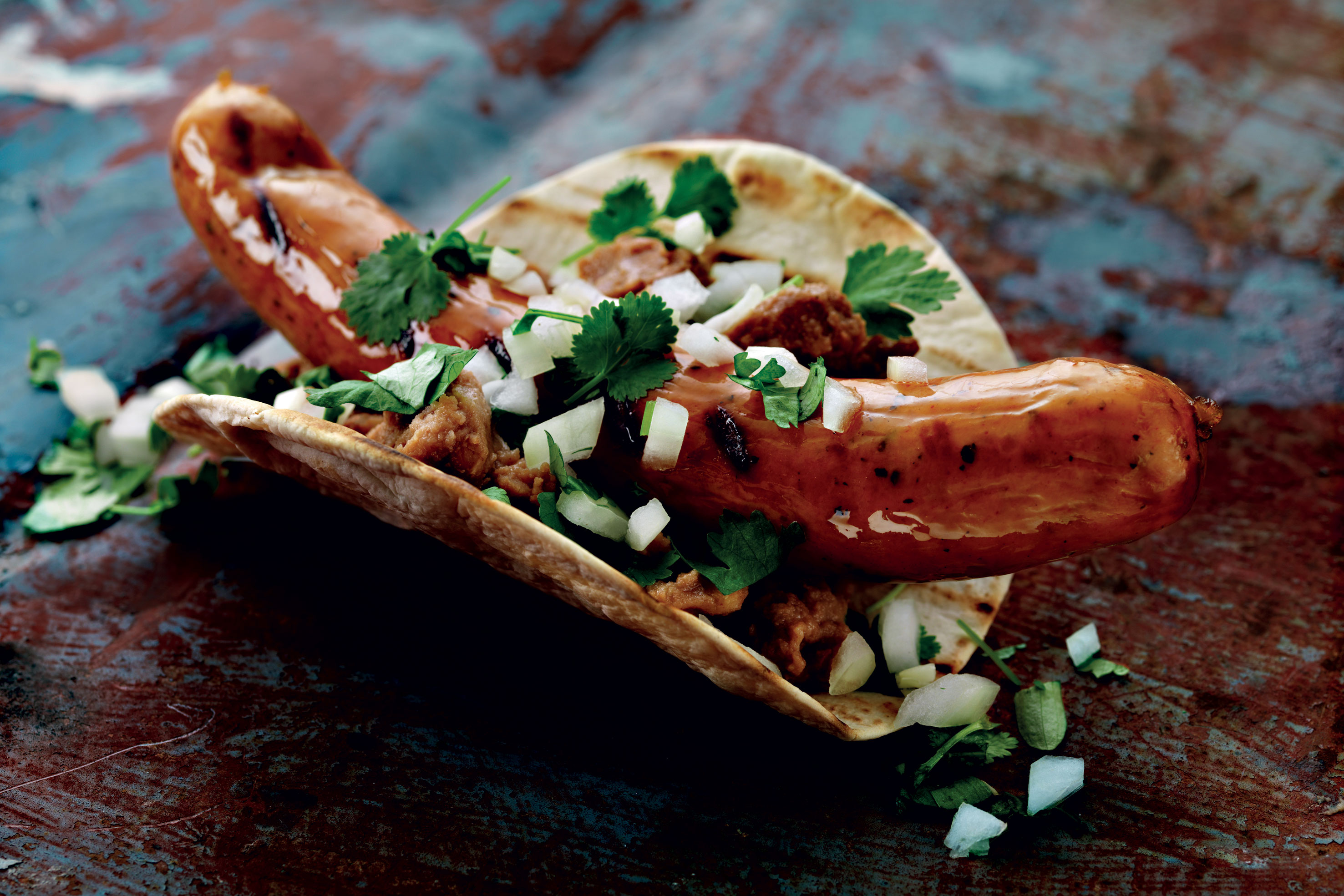Stekt falukorv med Texas hot beans