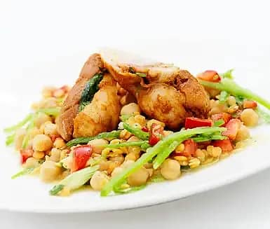 Bön- och linsragu med currysmaksatt kycklingrulle