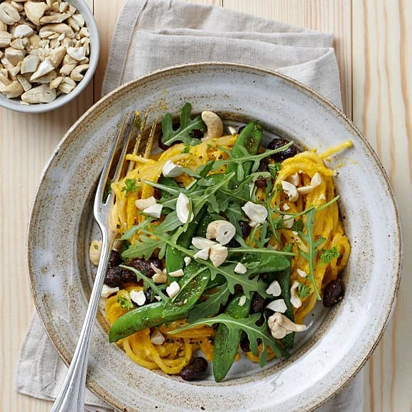 Pasta med morötter och currystekta bönor