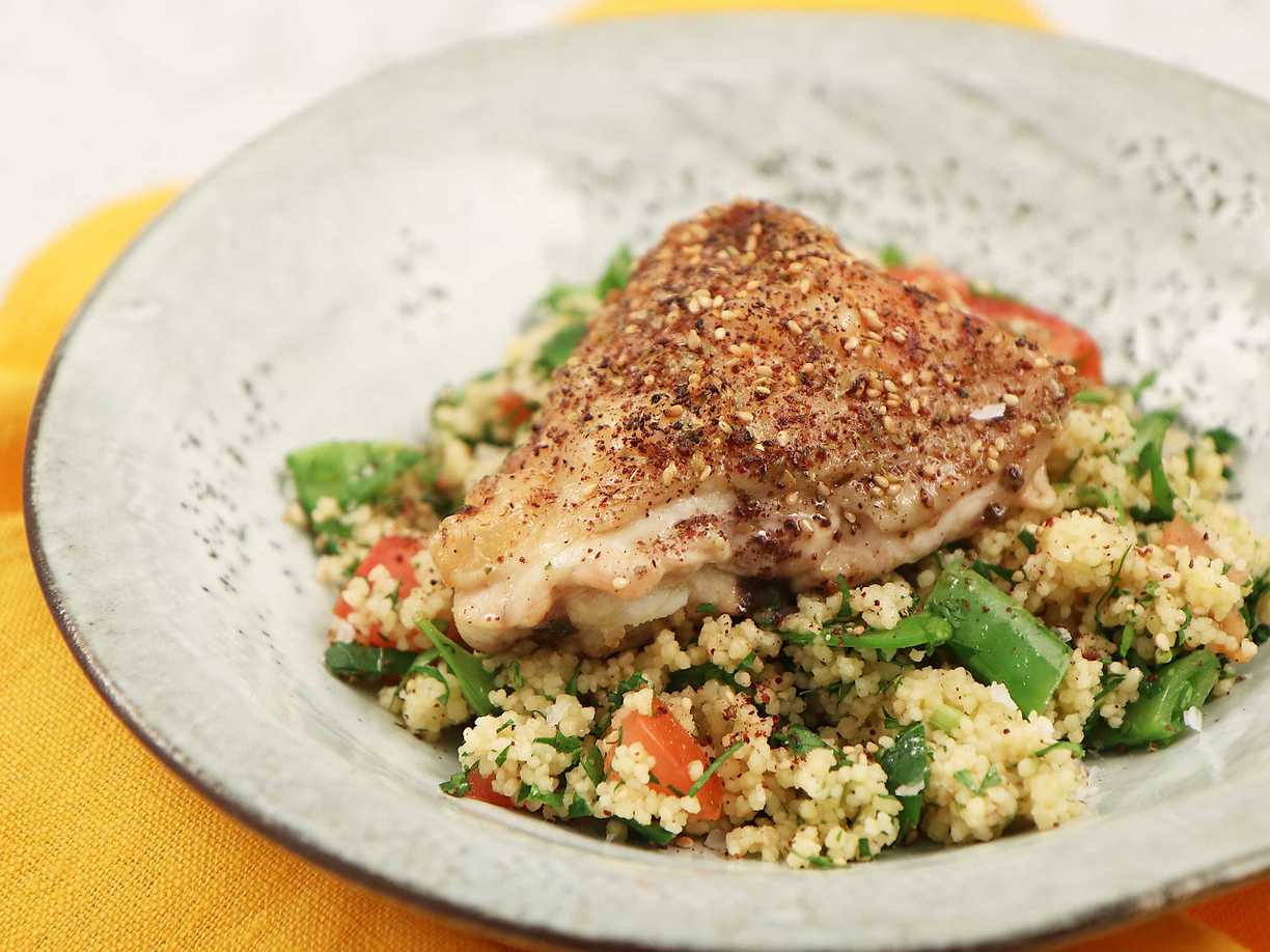 Kyckling zaatar med couscous och gröna bönor