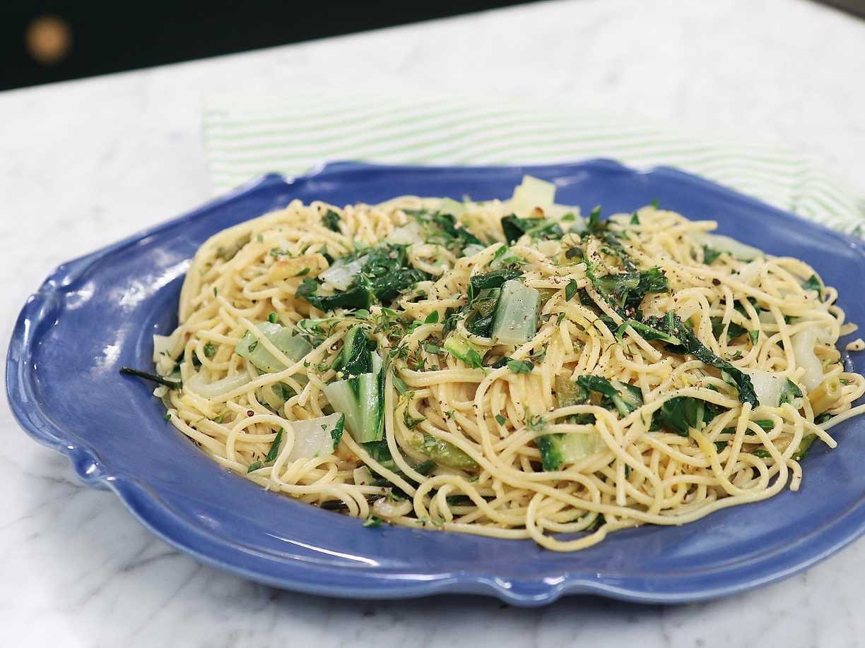 Sommarpasta med mangold och färska bönor
