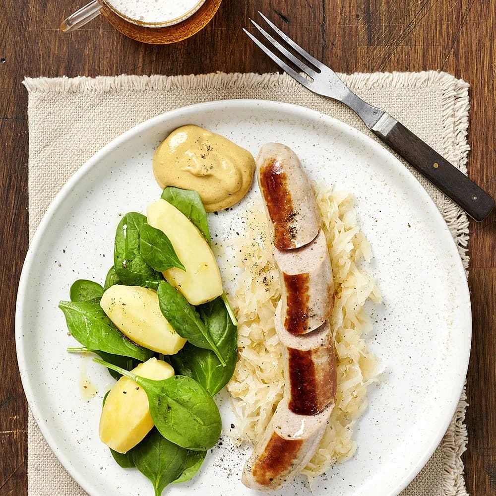 Thuringer bratwurst med surkål