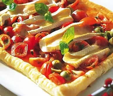 Brie- och tomattårta till drinken
