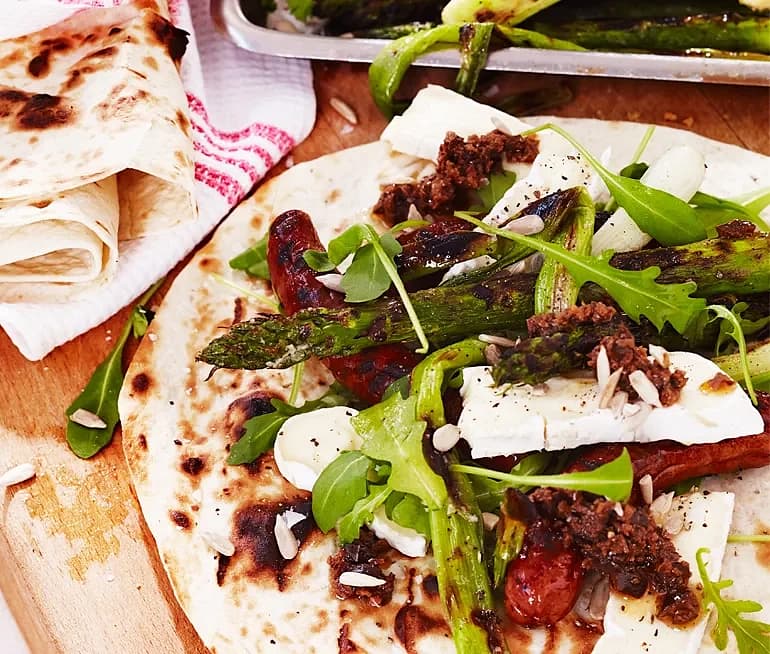Lammkorvswrap med brie och tapenad