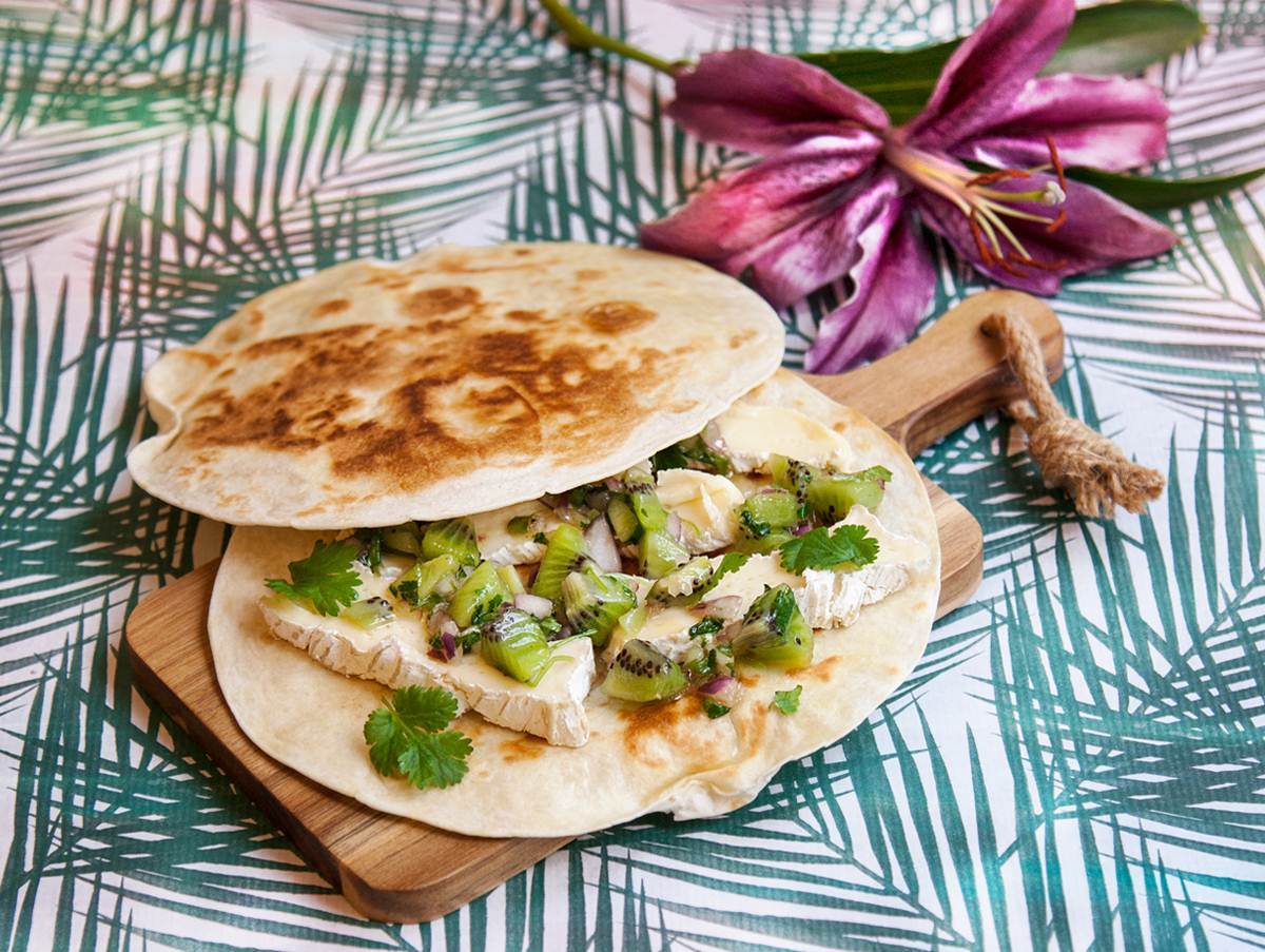 Quesadillas med brie och kiwisalsa