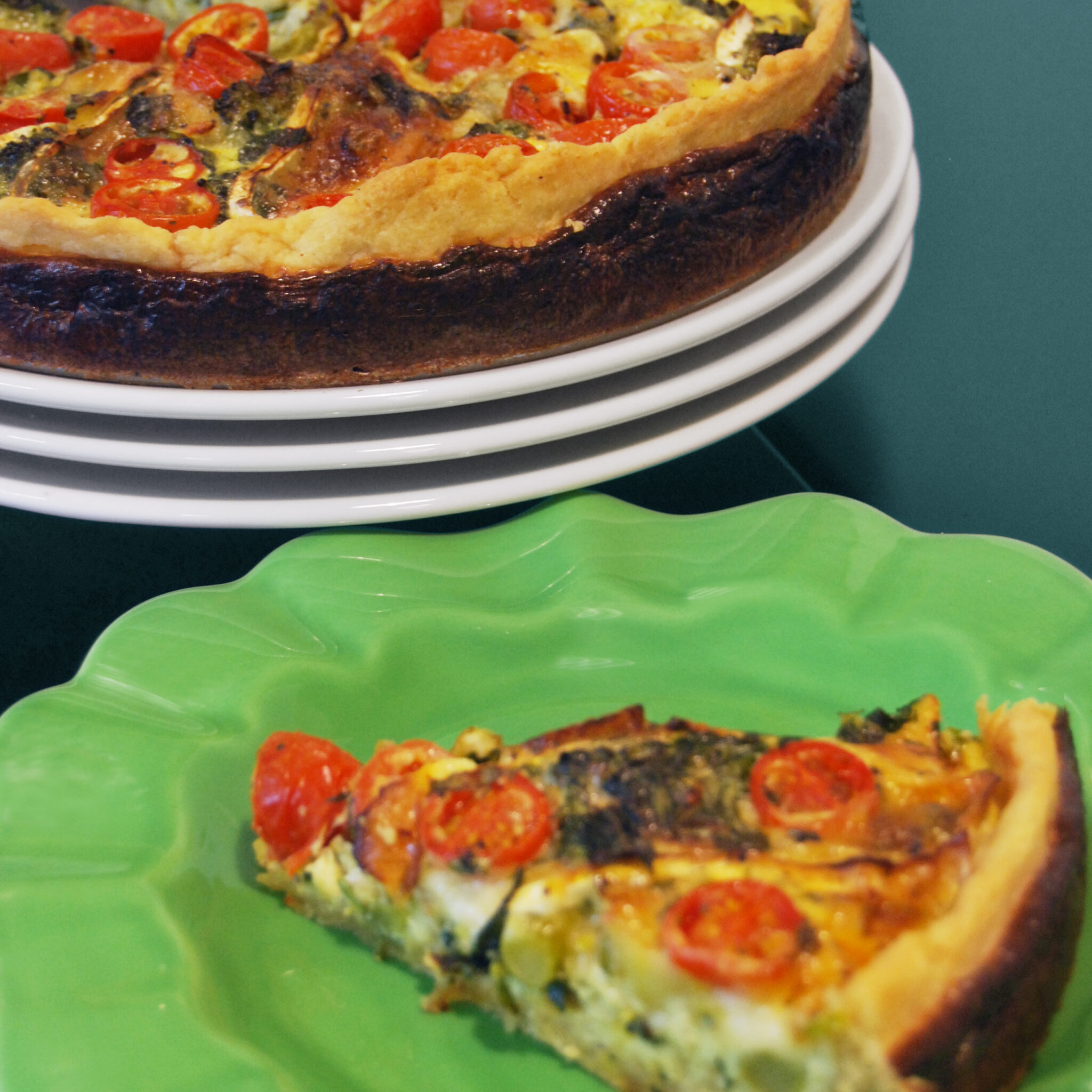 Brie-, tomat- och broccolipaj