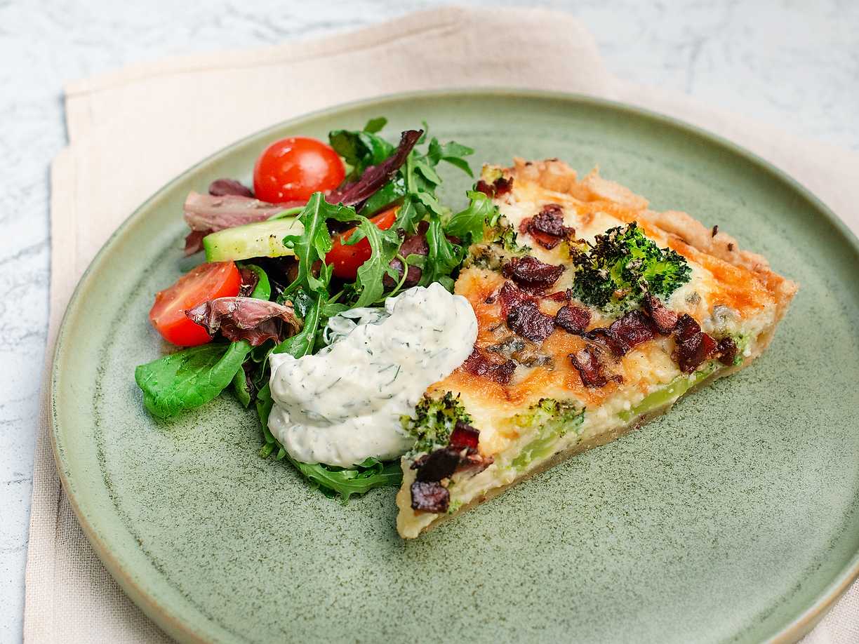 Broccolipaj med ost och bacon