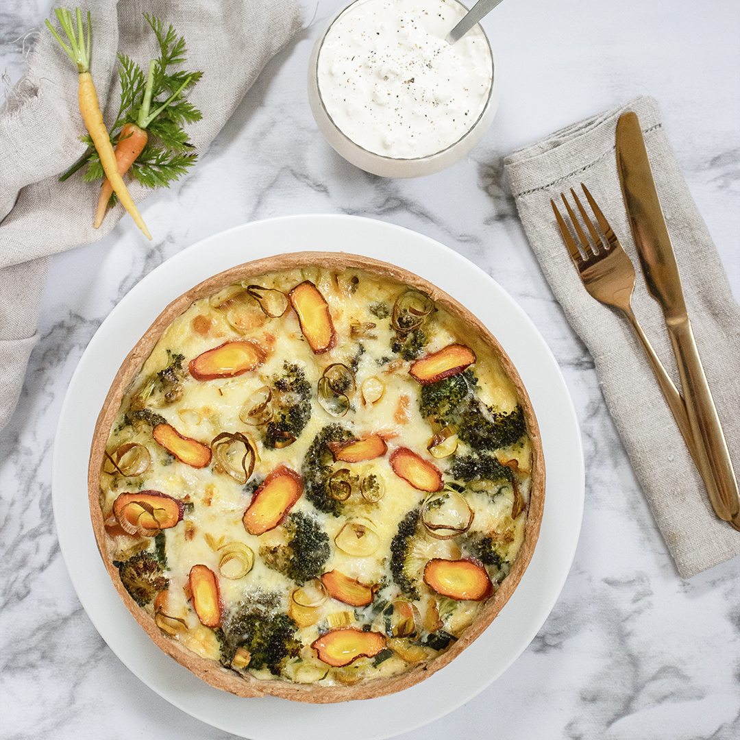 Broccolipaj med morötter och fetaostkräm