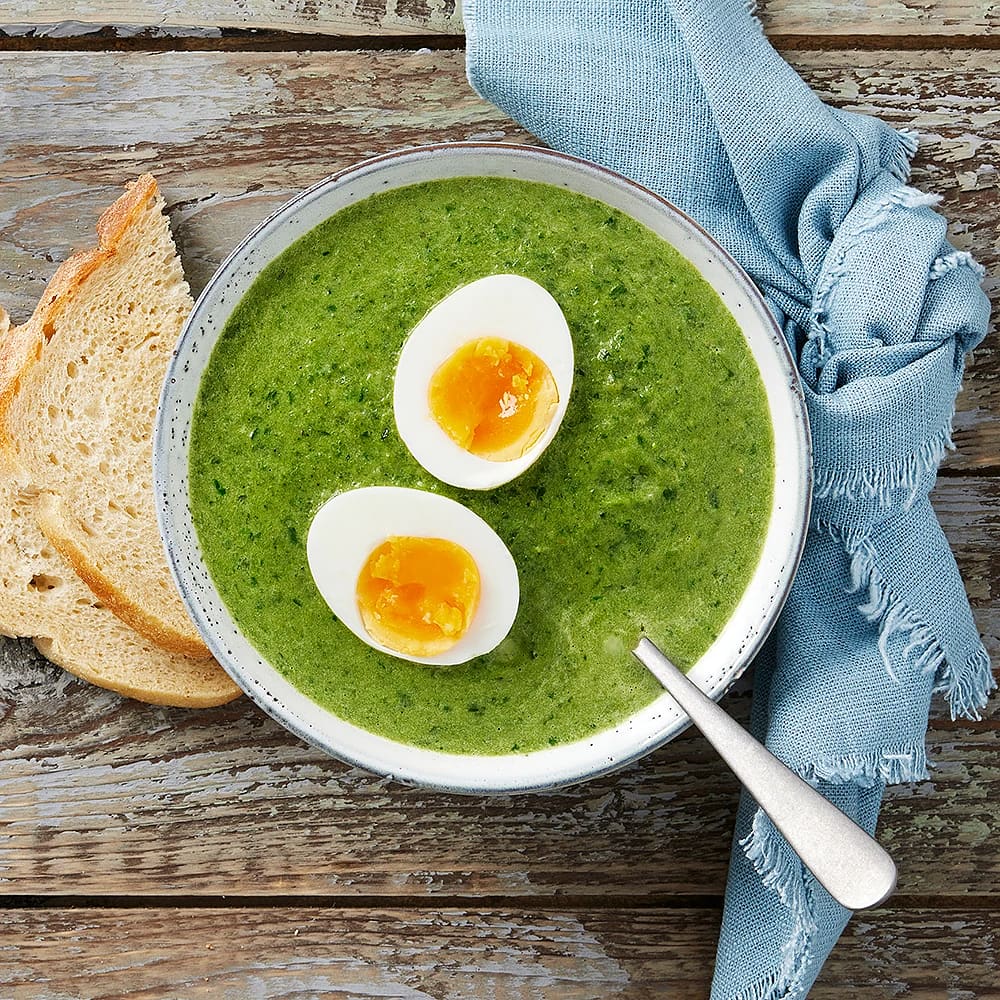 Spenatsoppa med ägg och bröd
