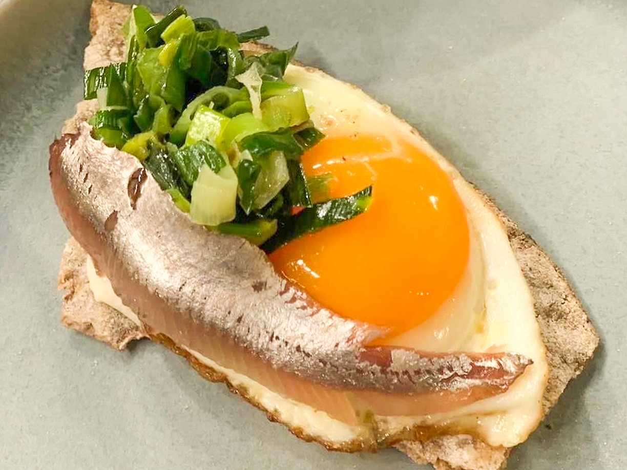 Crème ninon med knaperstekt bacon och bröd