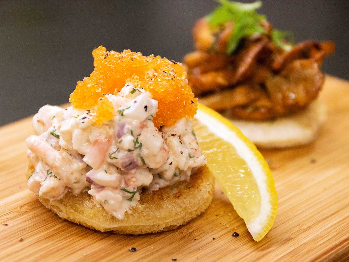 Toast Skagen med löjrom på smörstekt bröd