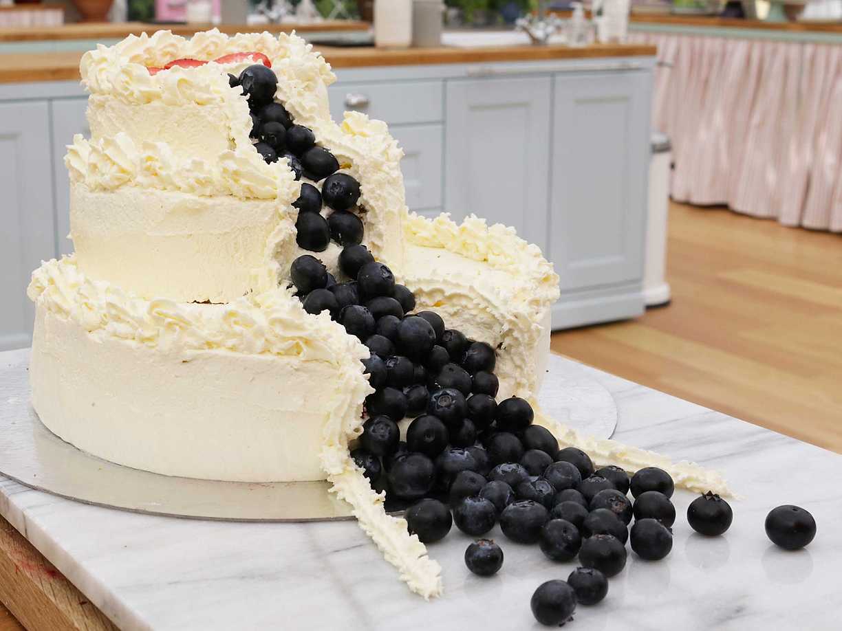 Bröllopstårta med blåbärsfall