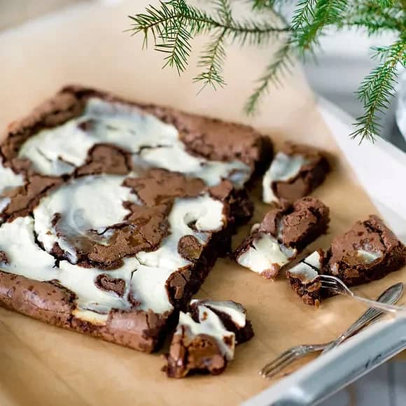 Brownie med vitchoklad- och färskostswirl