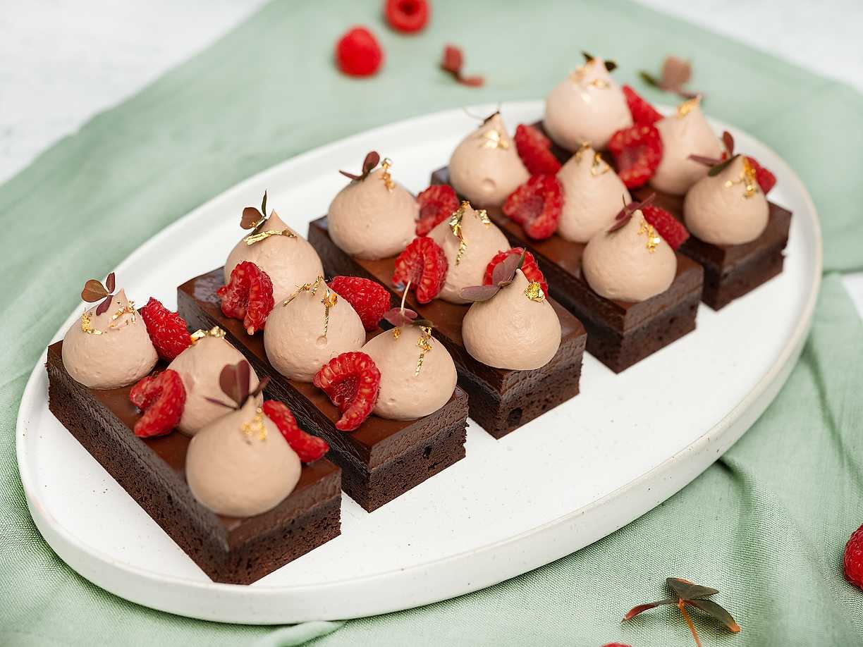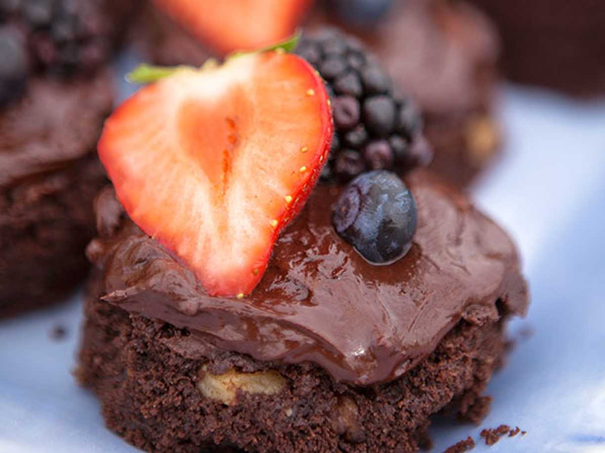 Brownies med chokladglasyr och färska bär