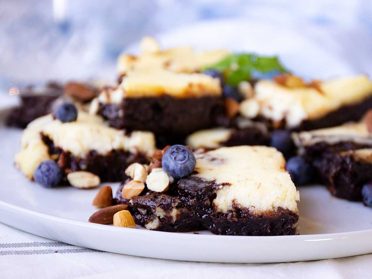 Brownie med rostad mandel och cheesecakeswirl