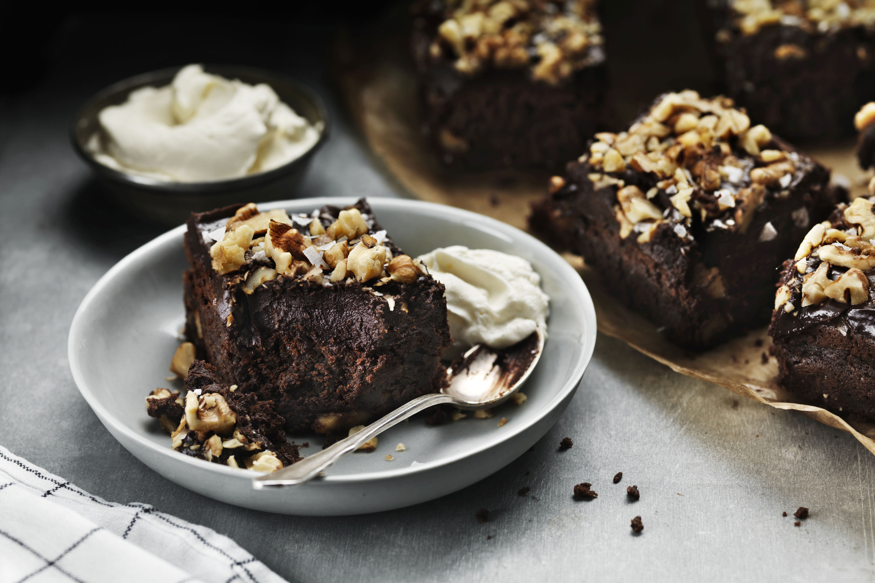 Brownies med valnötter och flingsalt