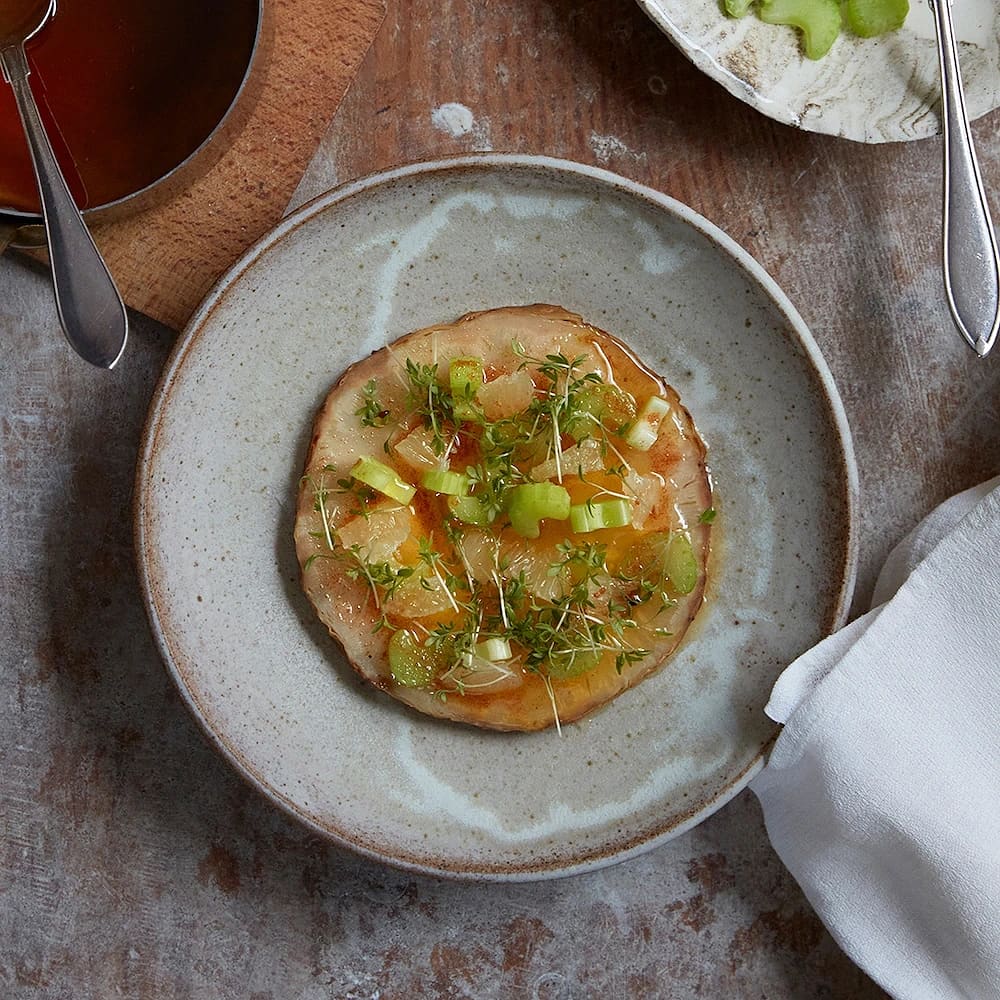 Ugnsbakad rotselleri med citron och brynt smör