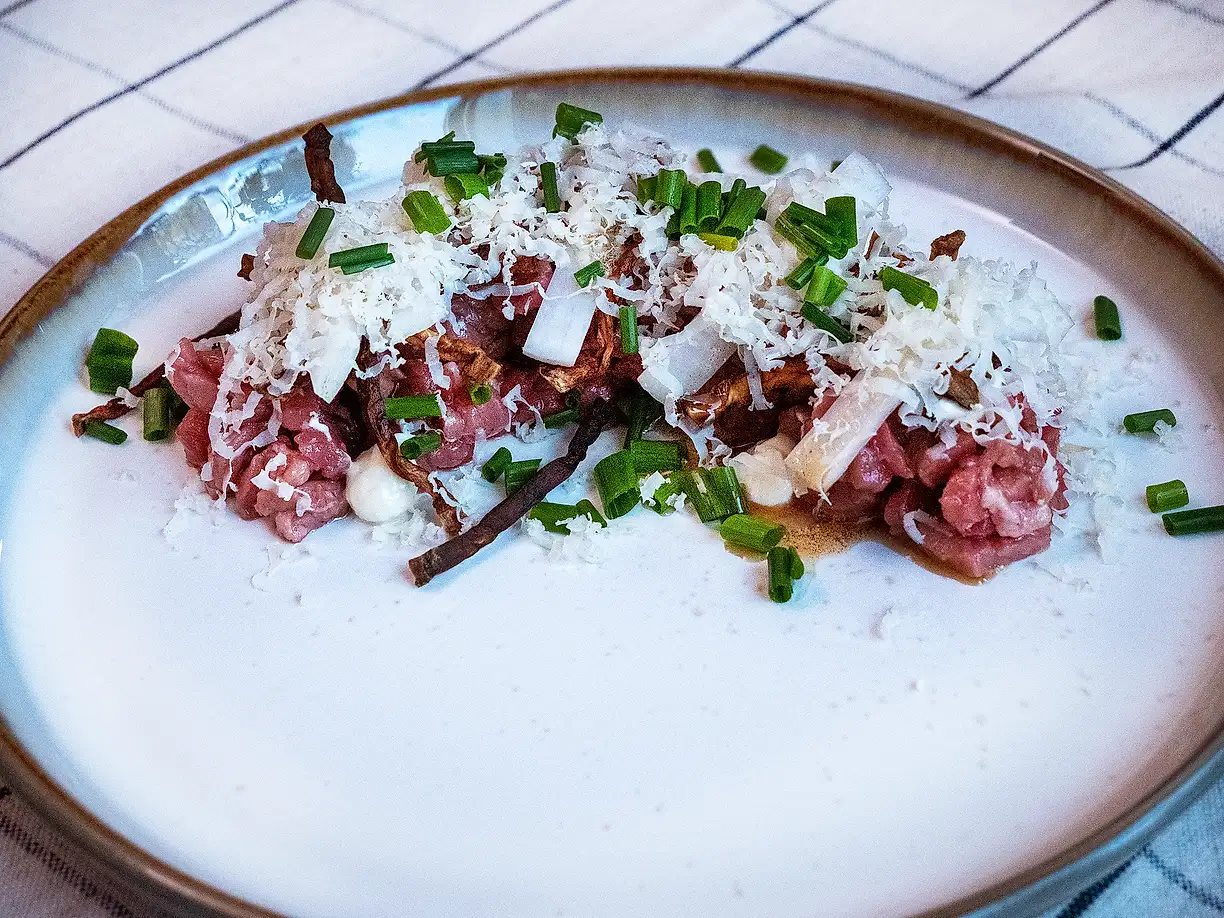 Råbiff med gruyèrekräm och brynt smör
