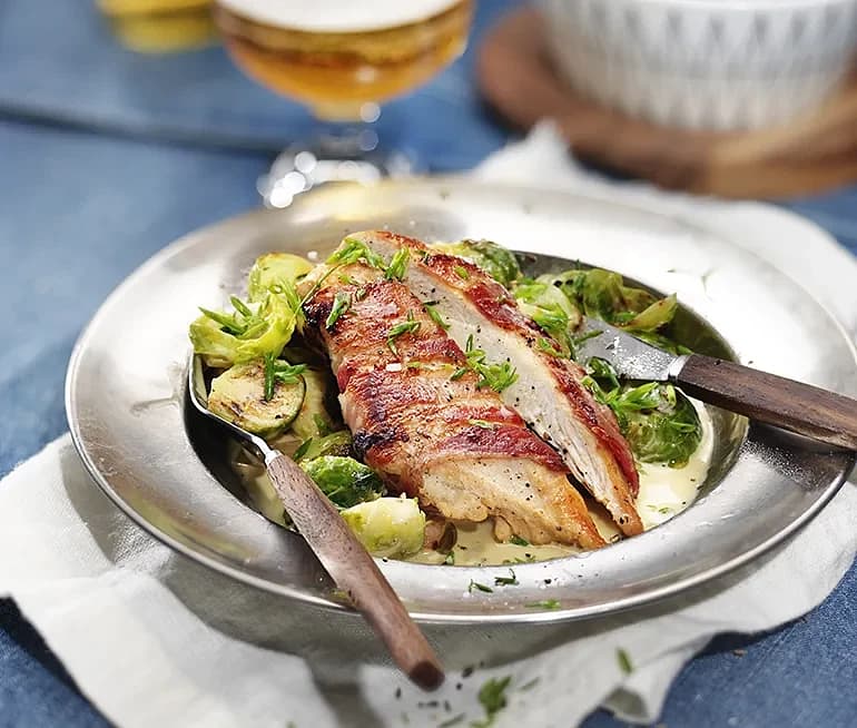 Kyckling med apelsinstekt brysselkål och potatisgratäng