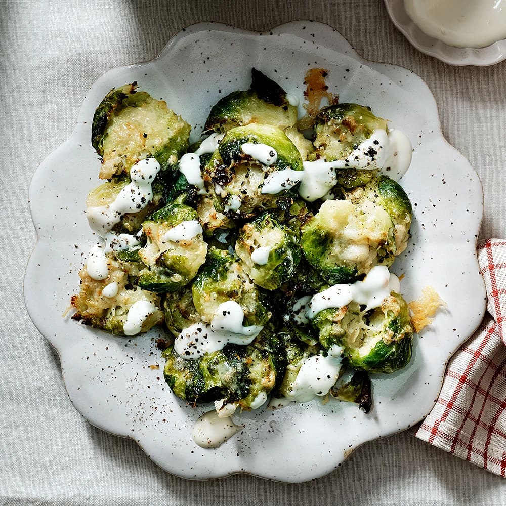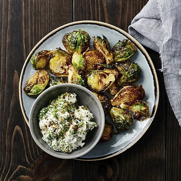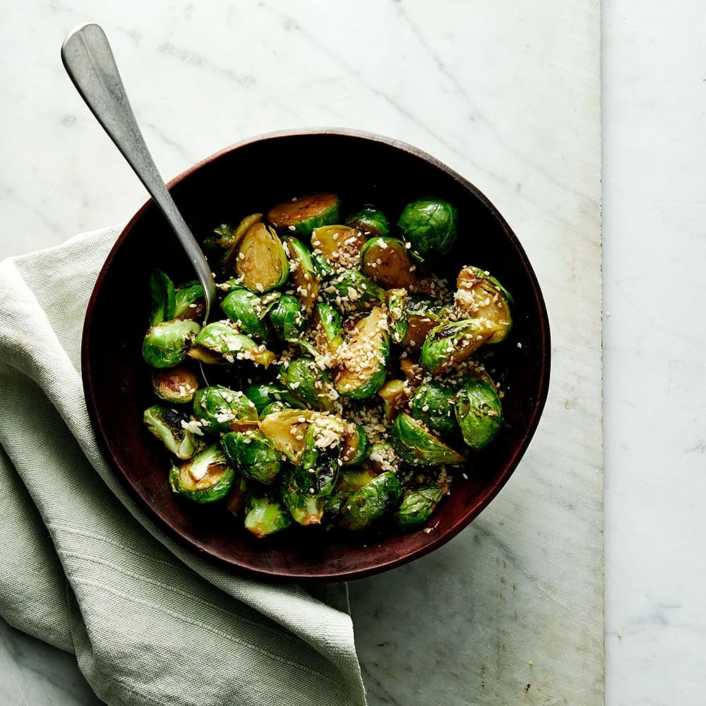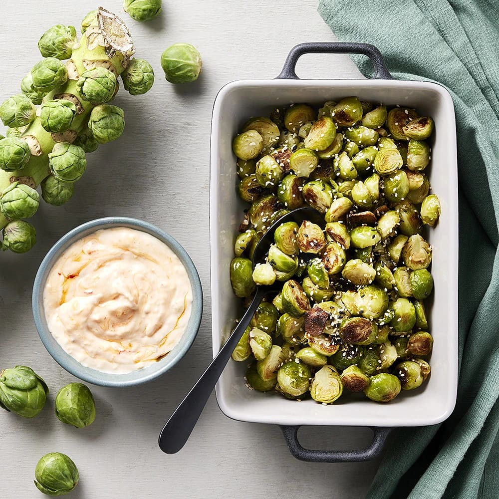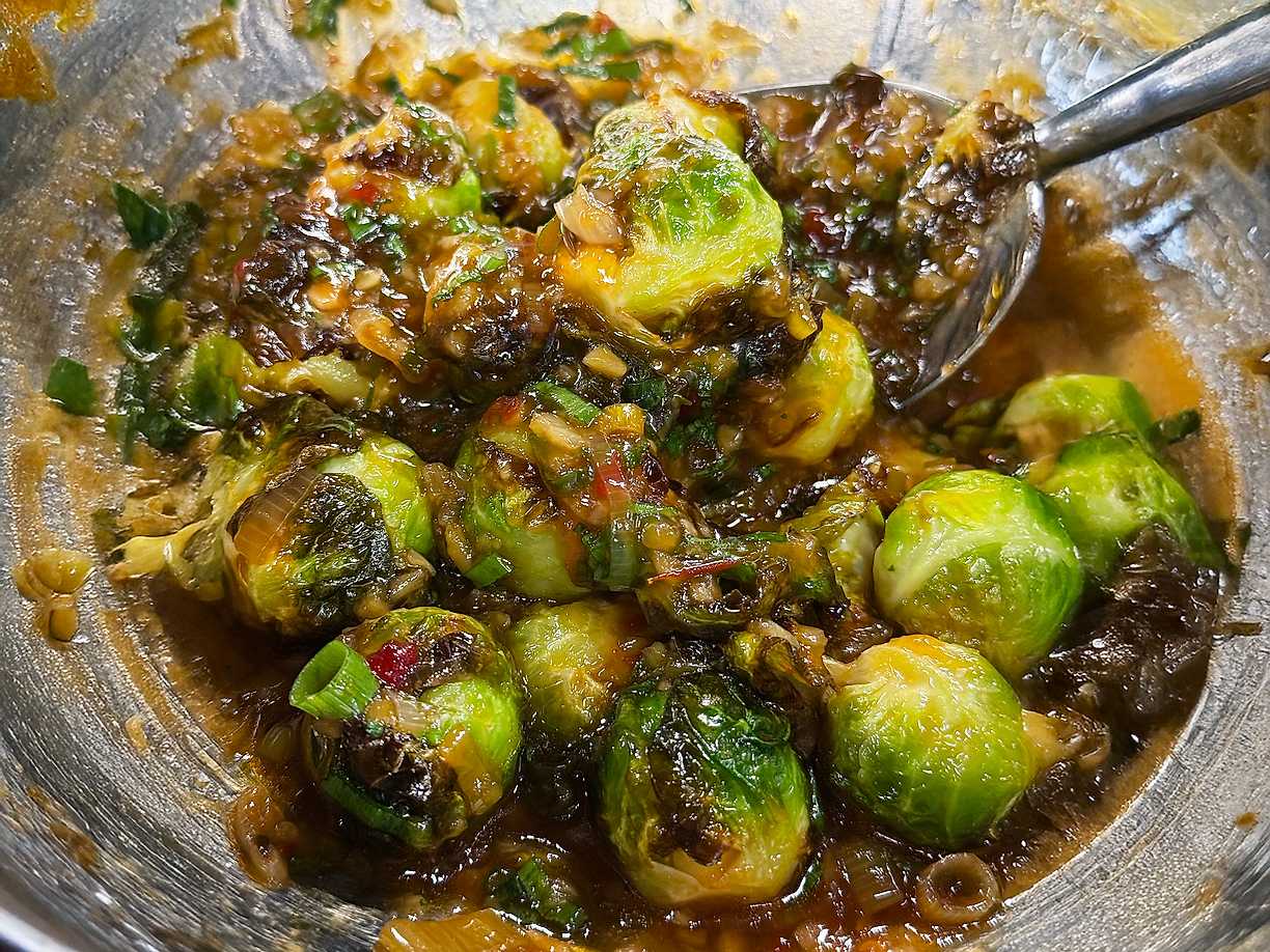 Vitlöksrostad brysselkål med söt ingefärsdressing