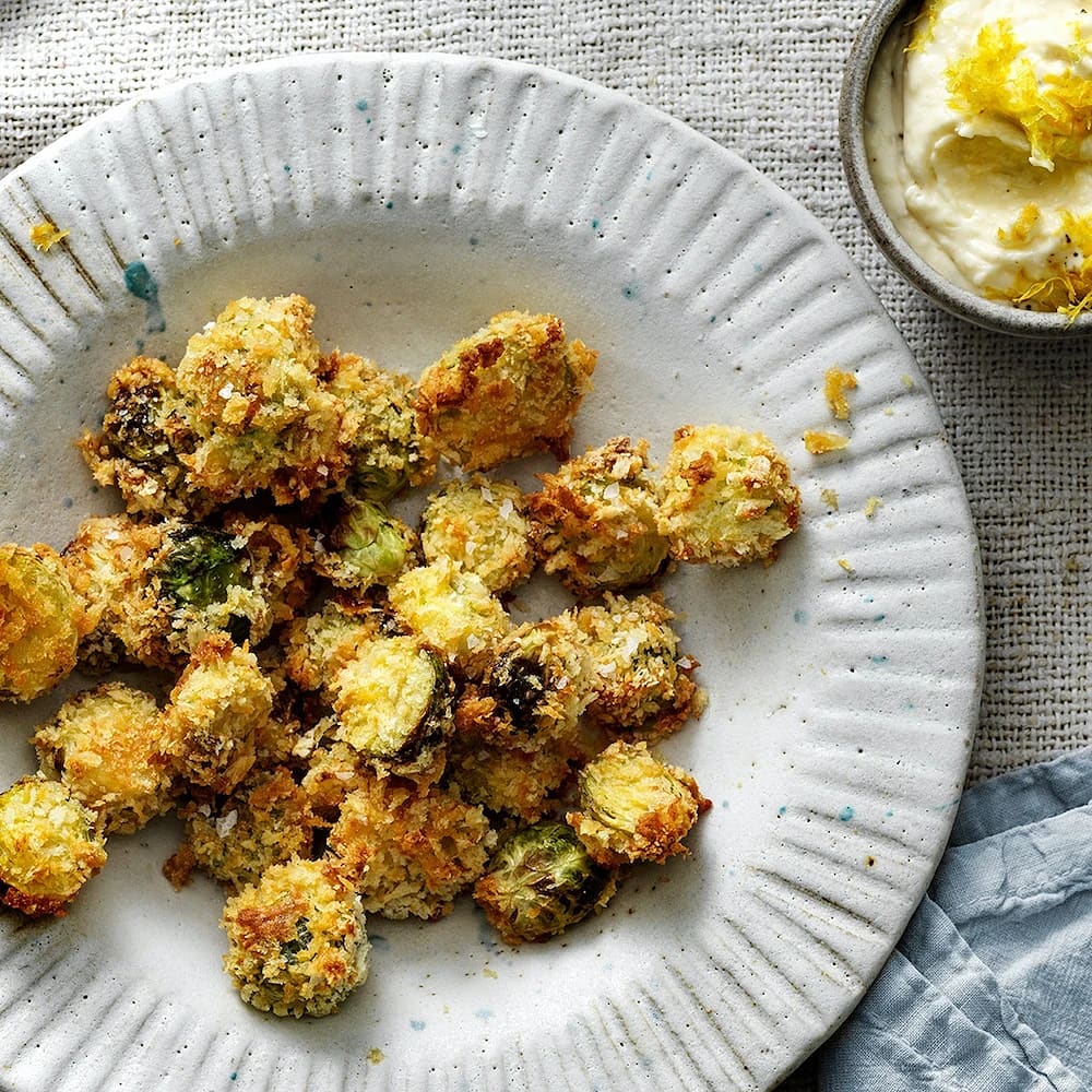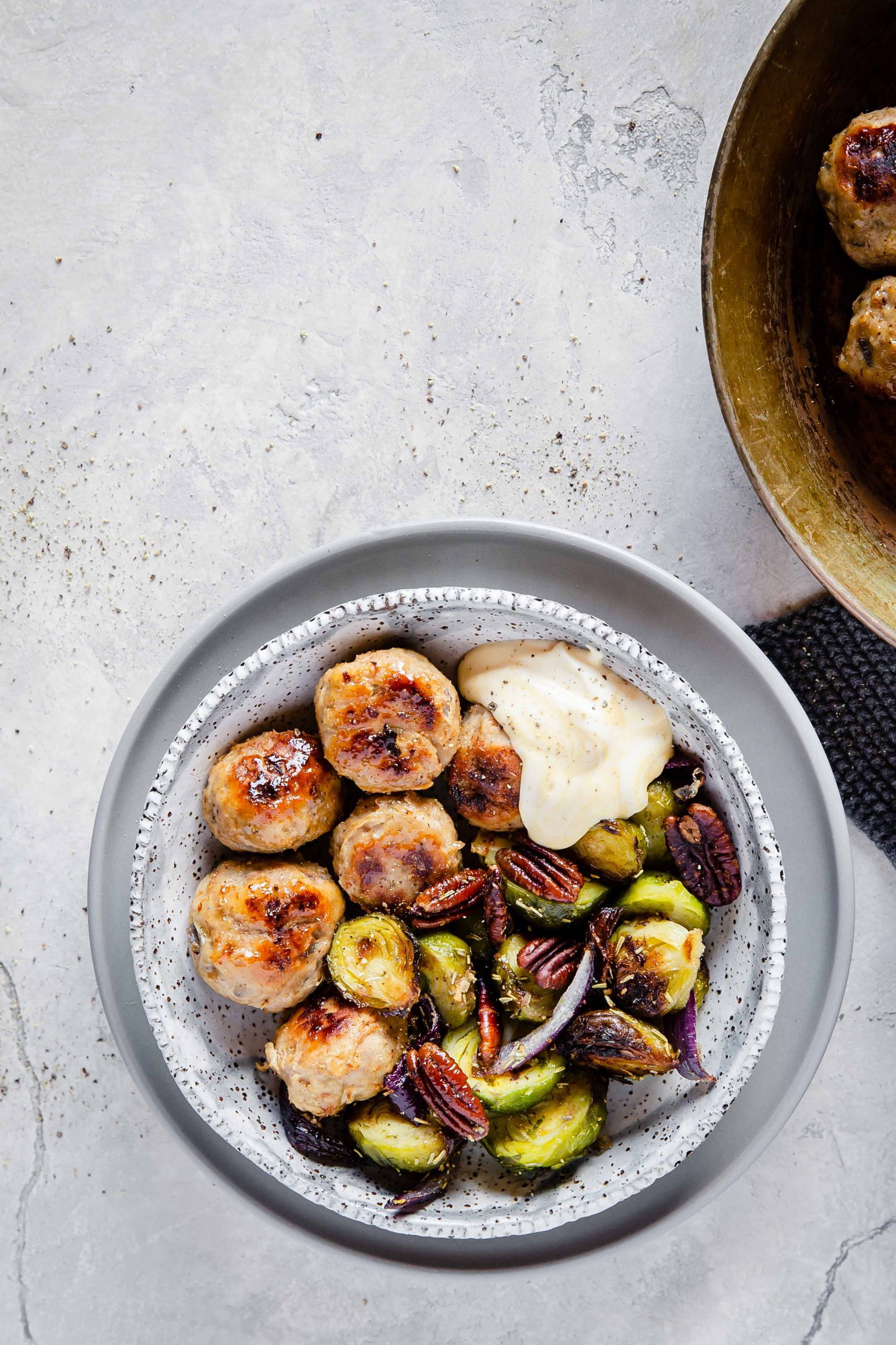 Kalkonköttbullar med rostad brysselkål och senapsmajonnäs