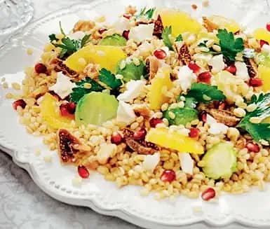 Julkryddad bulgur med friterad brysselkål och vitlöksyoghurt
