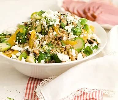 Apelsinstekt brysselkål med knaperstekt fläsk