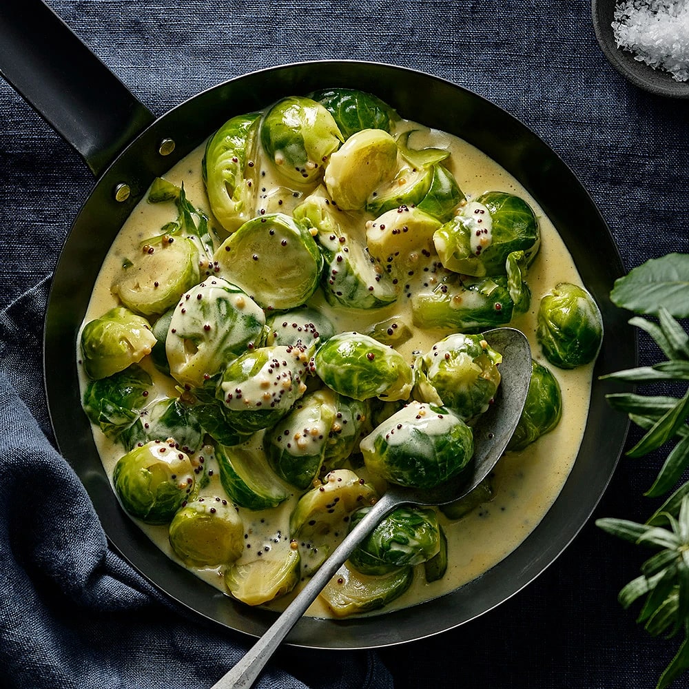 Brysselkåls- och hjärtsallad med kummin- och senapskräm
