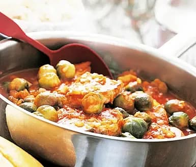 Brysselkål i kokosmjölk med räkor och koriander