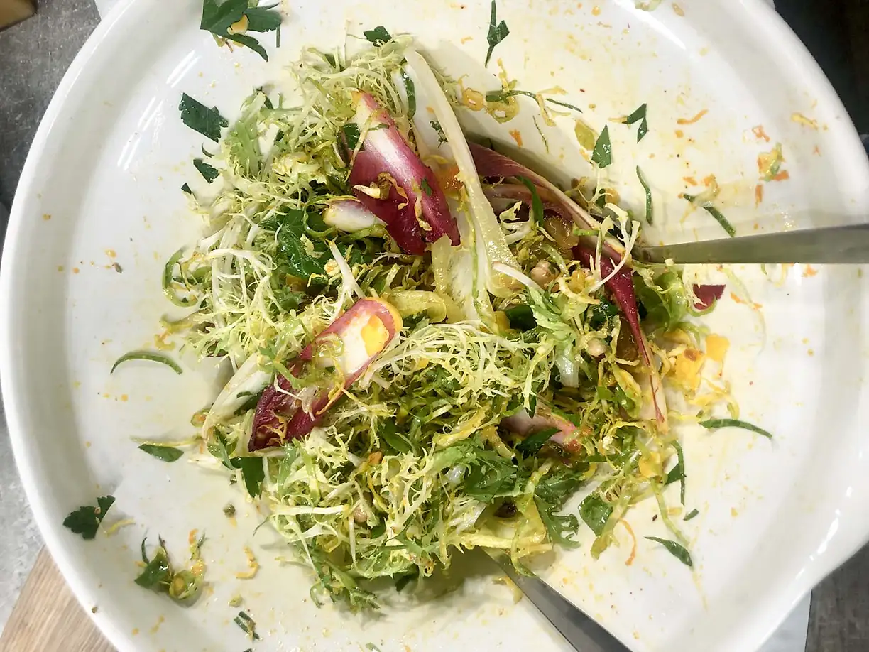 Råhyvlad brysselkål med chili- och ingefärsdressing