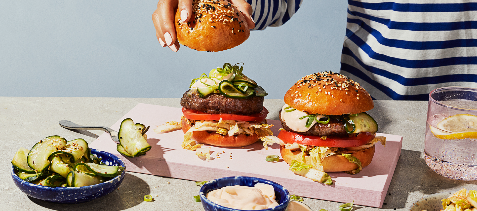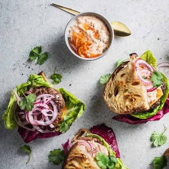 Burgare med kimchimajonnäs på surdegsbröd