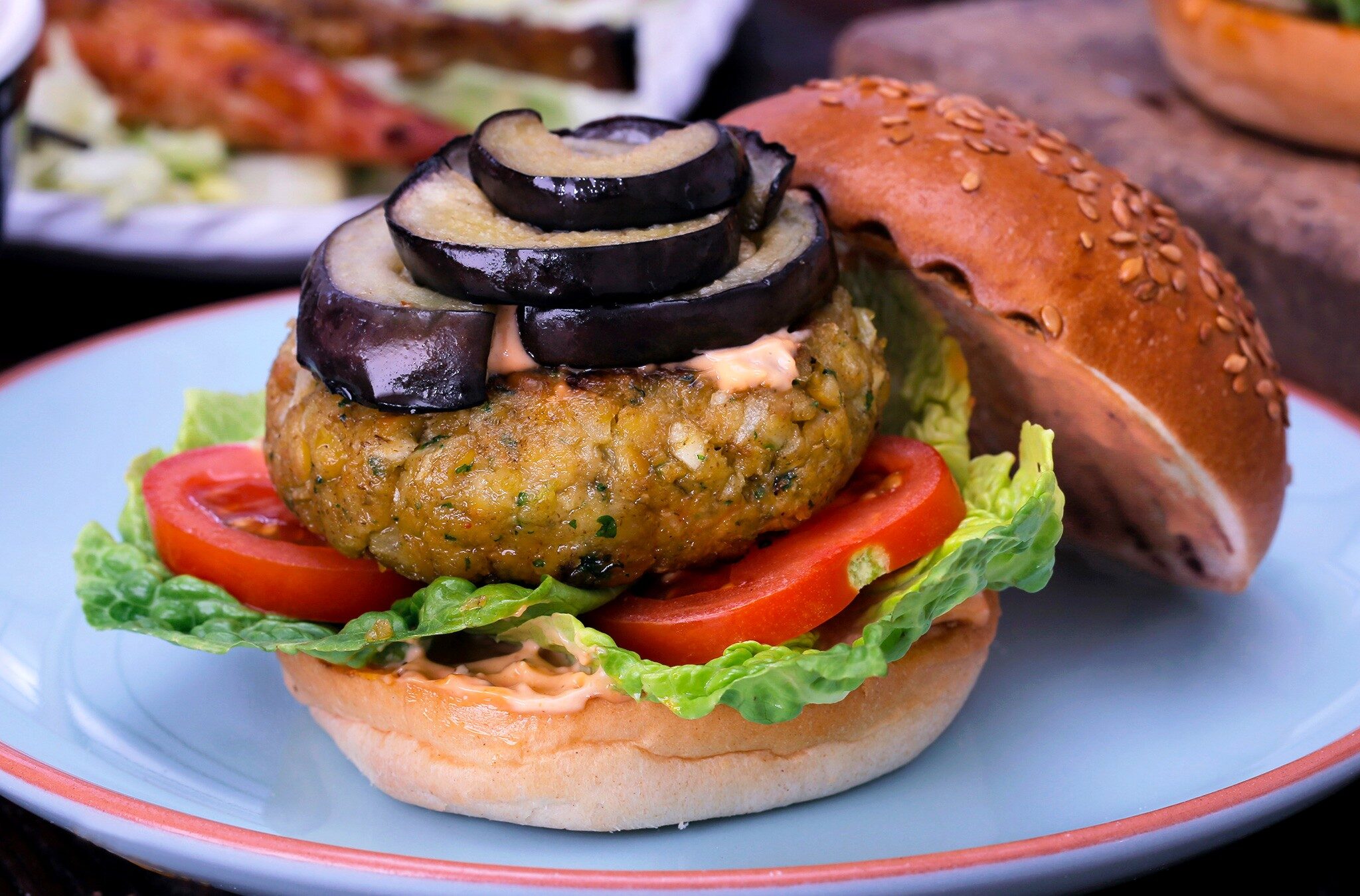 Burgare med aubergine och yoghurtsås